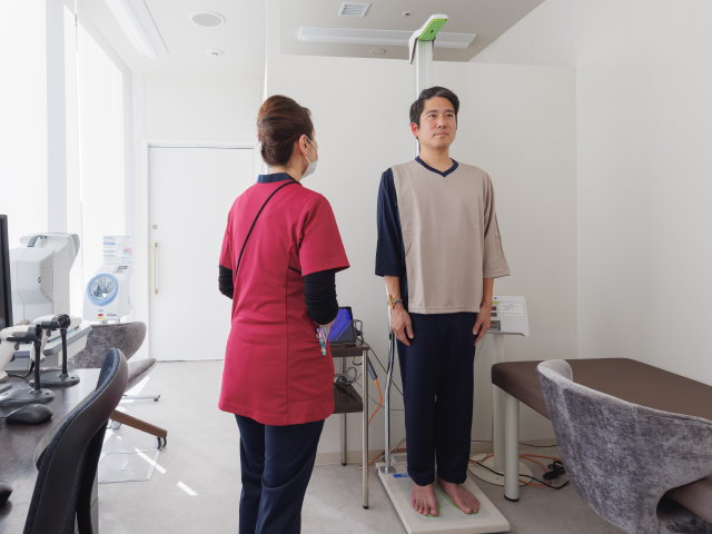 隣のお部屋にはお客様専用の検査スペース(身長・体重・視力・聴力・血圧測定など)や診察室もございます。